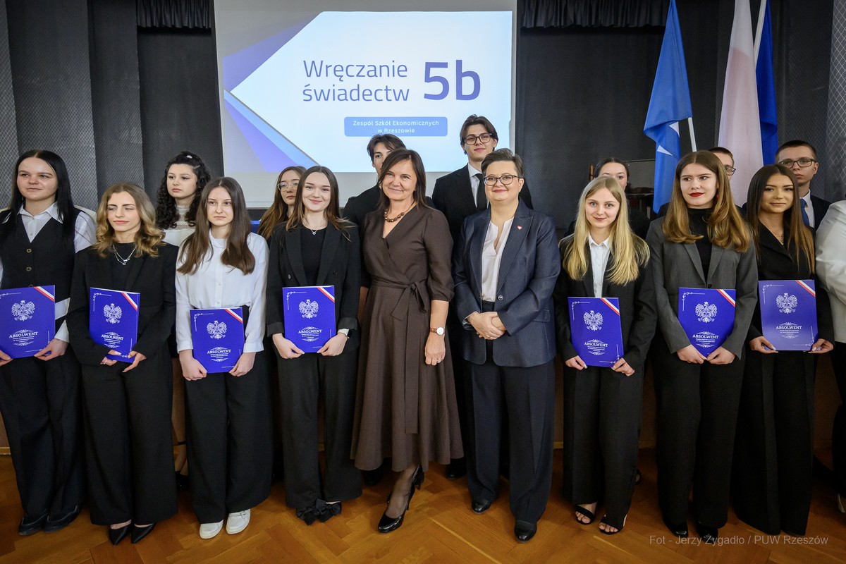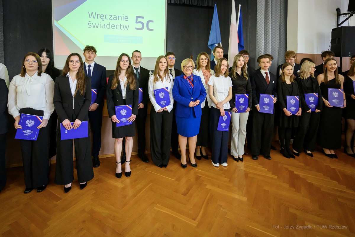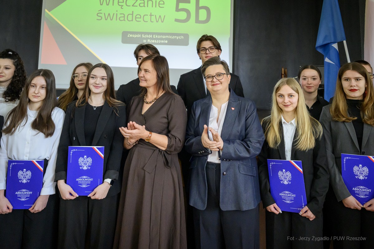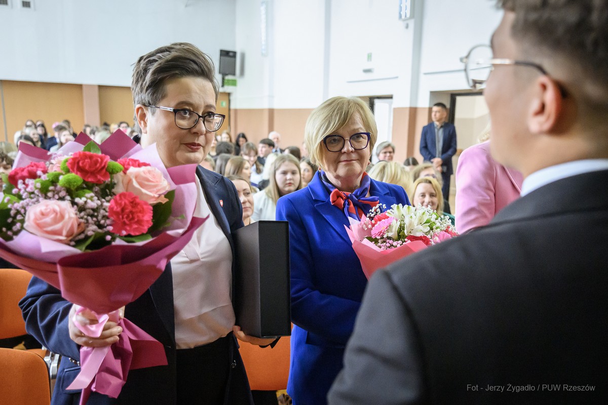 W Zespole Szkół Ekonomicznych im. M. Skłodowskiej-Curie w Rzeszowie w piątek (24 kwietnia) odbyło się uroczyste zakończenie roku szkolnego klas maturalnych z udziałem przedstawicieli administracji rządowej i samorządowej. Gościem uroczystości była wiceminister edukacji narodowej Katarzyna Lubnauer.
