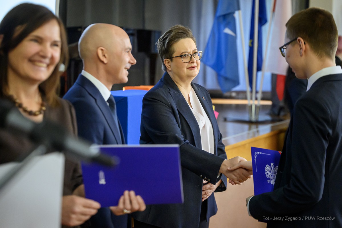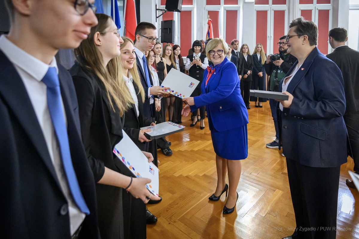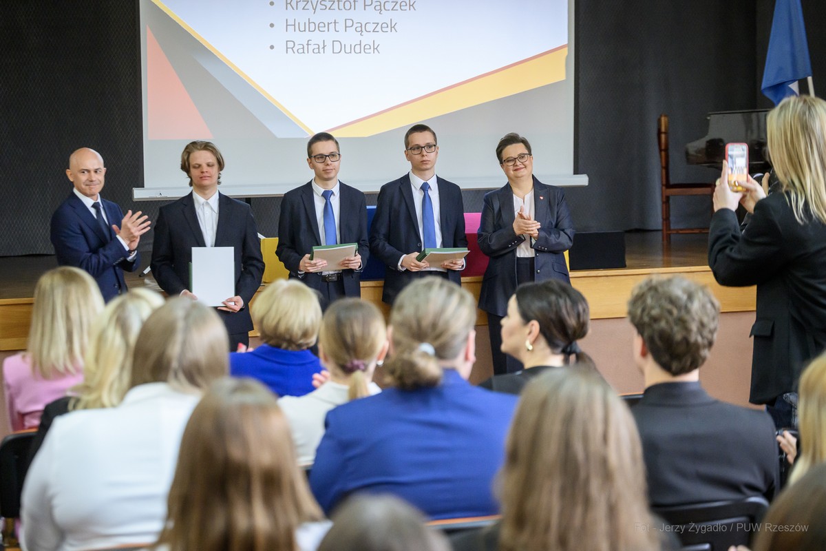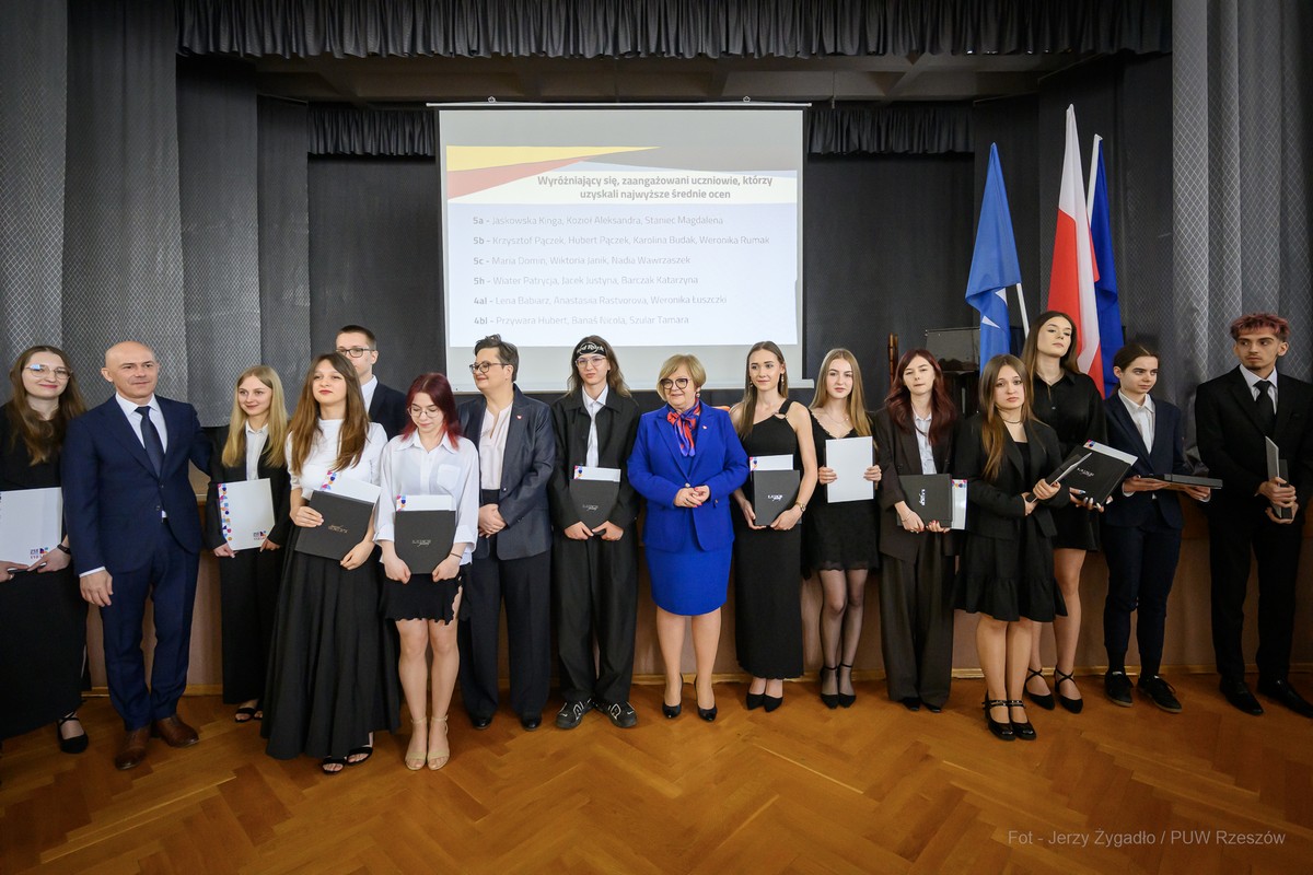 W Zespole Szkół Ekonomicznych im. M. Skłodowskiej-Curie w Rzeszowie w piątek (24 kwietnia) odbyło się uroczyste zakończenie roku szkolnego klas maturalnych z udziałem przedstawicieli administracji rządowej i samorządowej. Gościem uroczystości była wiceminister edukacji narodowej Katarzyna Lubnauer.