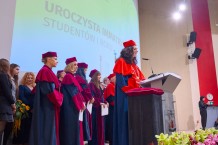 – Po raz 30 inaugurujemy rok akademicki w Wyższej Szkole Informatyki i Zarządzania w Rzeszowie i po raz 30 w murach naszej Uczelni witamy studentów I roku studiów. Drodzy studenci wasza decyzja, by to właśnie nam powierzyć swoje edukacyjne losy na najbliższe lata, jest dla nas zaszczytem i zobowiązaniem. Nie zawiedziemy Was, tak jak nie zawiedliśmy dotychczasowych ponad 70 tysięcy absolwentów. Wskaźnik zadowolenia ze studiowania w naszej Uczelni wynosi wśród badanych absolwentów ok 90%. I to jest wynik powtarzalny, będący efektem zasad i wartości, które dla nas są kompasem. Rzetelność, odpowiedzialność, tolerancja, poszanowanie różnorodności, użyteczność dla otoczenia gospodarczego i dbałość o naszą planetę. To będzie od 1 października Drodzy Studenci, fundament Waszej edukacji. Jeszcze raz witam Was w naszym gronie i jestem przekonany, że rozpoczynacie fantastyczny czas w swoim życiu – mówił zwracając się do studentów WSIiZ rektor, dr hab. Andrzej Rozmus, prof. WSIiZ.