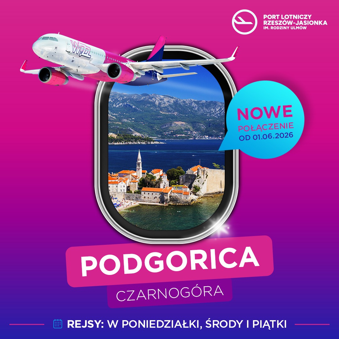 - Uruchomienie połączenia do Podgoricy to naturalna konsekwencja rozwoju naszej współpracy z liniami Wizz Air. Czarnogóra cieszy się rosnącą popularnością wśród polskich turystów, a bezpośrednie połączenie z Podkarpacia ułatwi mieszkańcom regionu dostęp do tego urokliwego miejsca - powiedział Adam Hamryszczak, prezes zarządu Portu Lotniczego Rzeszów-Jasionka im. Rodziny Ulmów.