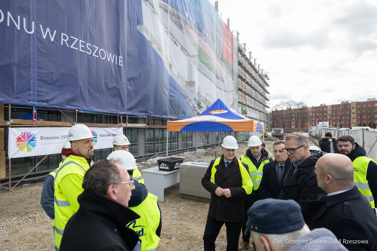 Przy tego typu dużych inwestycjach zazwyczaj organizowane jest symboliczne wmurowanie kamienia węgielnego. Najczęściej na początku budowy obiektu. Przez ponad rok do niczego takiego nie doszło, aż do piątku 13 lutego. Wszystko odbyło się jednak w ciszy. Rzeszowski ratusz nie informował o wydarzeniu, nie zaproszono lokalnych mediów.